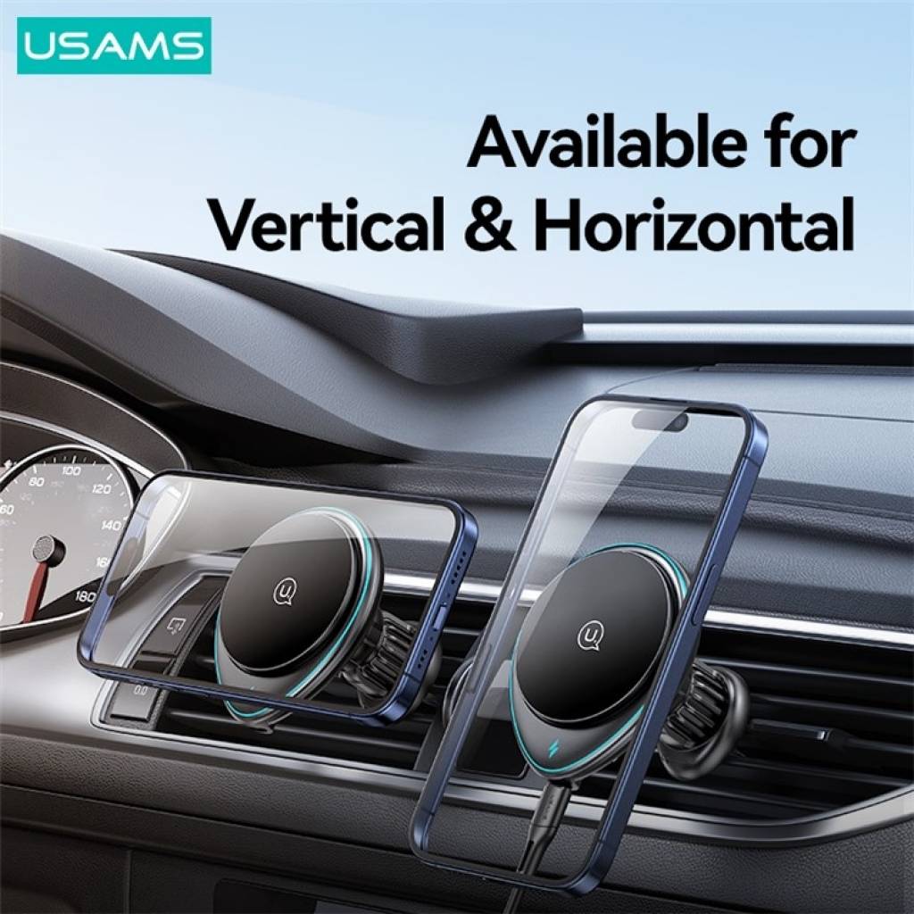 Cargador Auto Magnético 15W Inalámbrico Con soporte para Ventilación y luz Negro USAMS CD222
