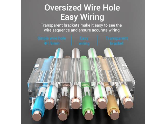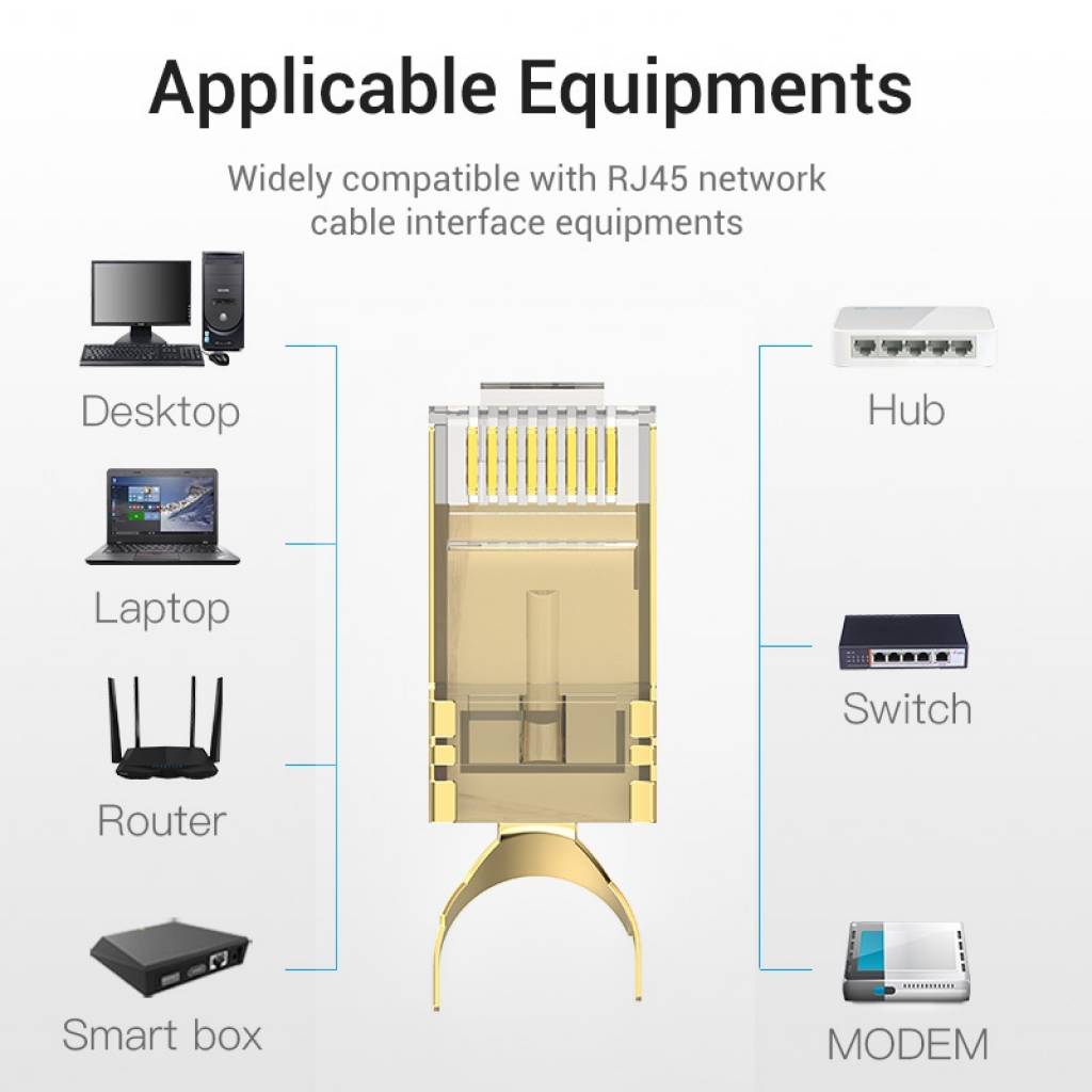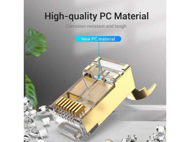 - Estructura: Diseñado para cables Cat.8 FTP, con blindaje metálico avanzado (carcasa de cobre chapado en oro) para una máxima protección contra interferencias.